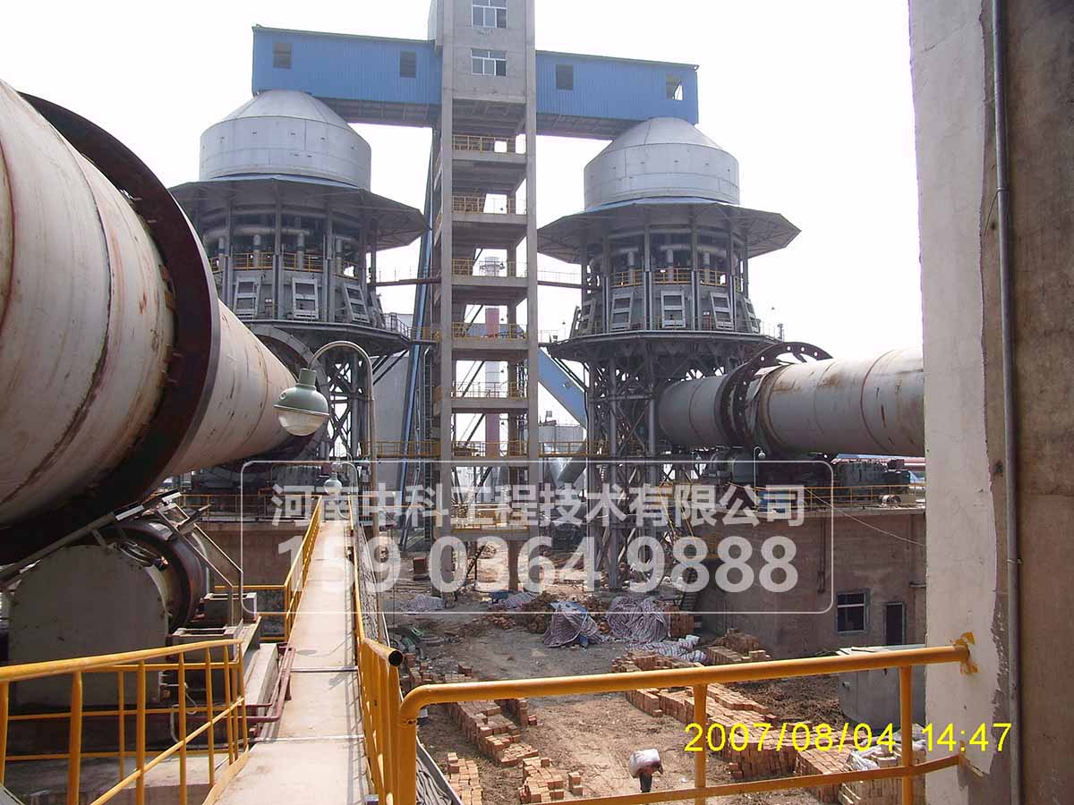 豎式預熱器是生產活性石灰的主要設備之一,豎式預熱器的主要作用是把上部料倉送來的石灰石物料送到豎式預熱器內,與窯內煅燒后排放出來的高溫廢氣(950℃--1100℃)進行熱交換,在豎式預熱器內將物料均勻地預熱到900℃以上,經預熱后約有30﹪的CaCO3在預熱器內分解,然后再由液壓推桿推入回轉窯內煅燒。這樣的煅燒工藝不僅使石灰石在窯內煅燒時間大大縮短,同時也能獲得具有較高活性度的石灰。我公司采用...