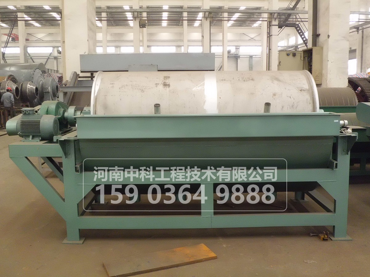 濕式永磁筒式磁選機本機廣泛用于選礦、洗煤和化工等部門,用于濕式選別粒度為6-0毫米的強磁性礦物,并將礦物分為磁性物及非磁性物兩種產品。它所選別的強磁性物的比磁化系數X應不低于3000×106cm3/克,屬于這類礦物有磁鐵礦,磁黃鐵礦等,對于赤鐵礦、褐鐵礦、蕶鐵礦等須予選進行磁化焙燒,方能進行選別。同一圓筒可配三種槽體,即半逆流槽、逆流槽、順流槽,適應不同選別工藝。半逆流槽適用于礦石粒度為0....